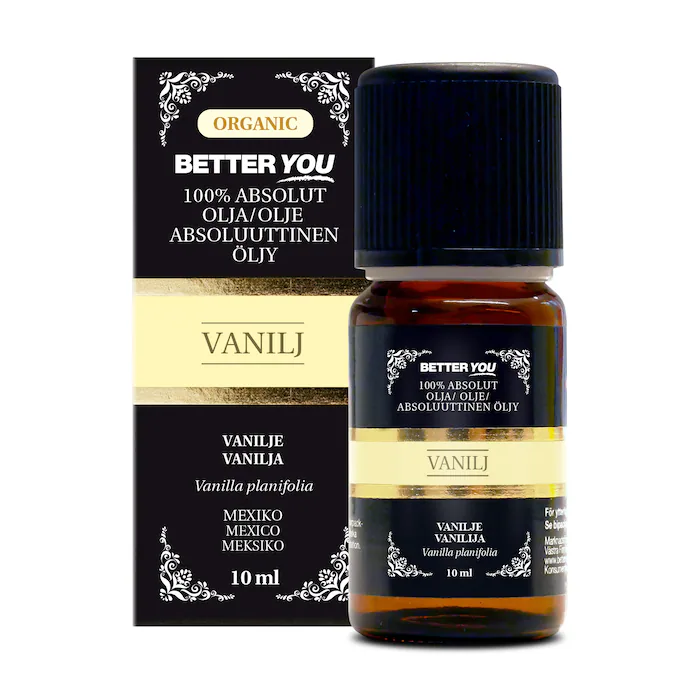Better You vaniljolja är en ekologisk olja extraherad från vaniljbönor. Vaniljoljan har en naturligt rogivande doft som lugnar sinnet och bidrar till klarare tankar. Dessutom väcker den härliga doften minnen från barndomen hos många och kan därmed lyfta ditt humör.